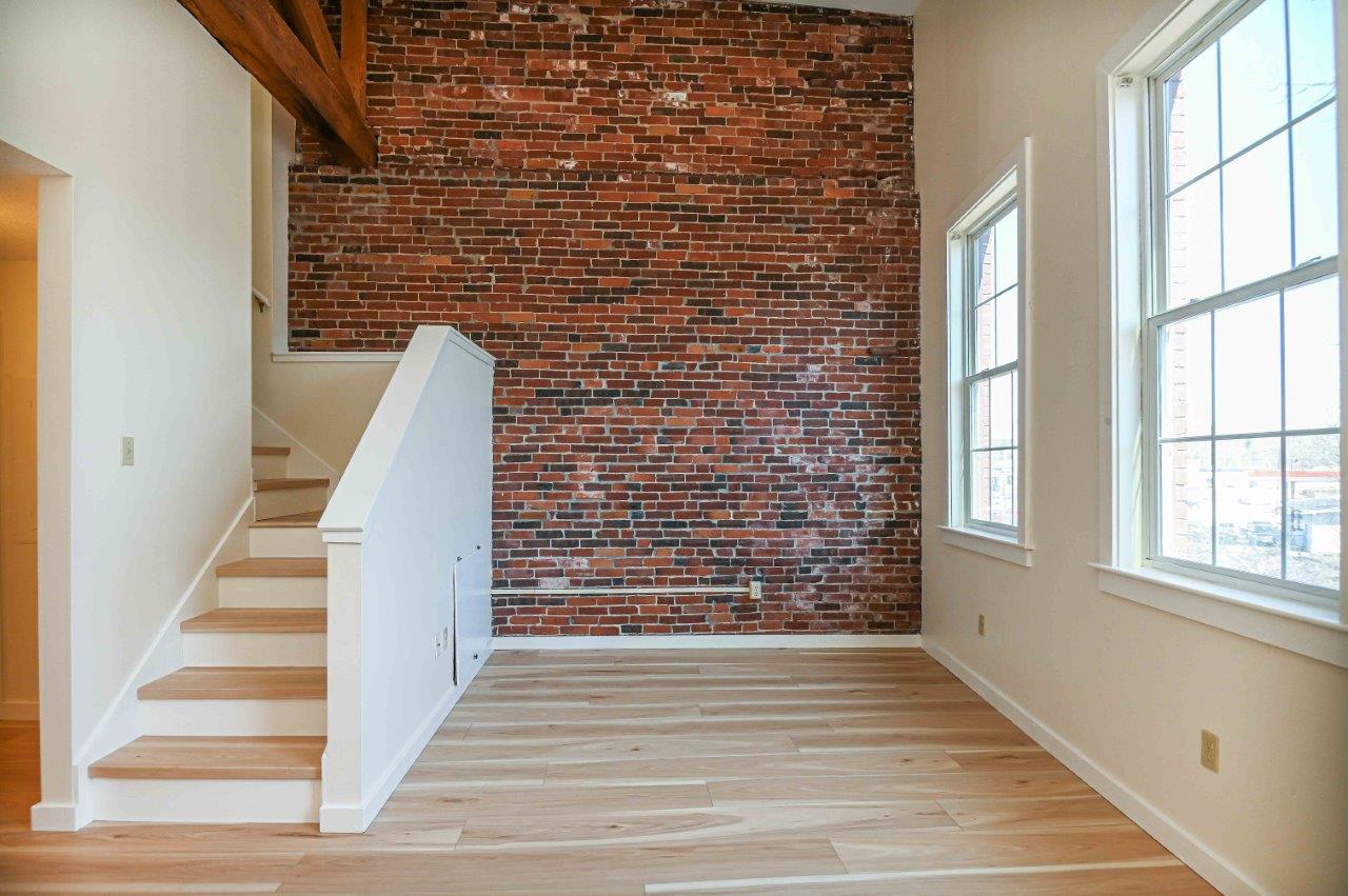 SALMON FALLS RIVER VIEWS FROM THIS recently refreshed Somersworth condo. Immerse yourself in history as you step into this downtown gem, where the exposed brick walls and wooden beams tell tales of yesteryears when they once served as the backdrop for drying wool in a bustling woolen mill. Now transformed into a modern residence, these walls exude character and charm, blending seamlessly with contemporary comforts. With recent renovations including fresh paint and new vinyl plank flooring, all that’s left is to move in! Situated on the second floor, this residence ensures both privacy and tranquility within, with the added comfort of central air-conditioning. The oversized windows allow in abundant natural sunlight while overlooking the river. Experience having your own private laundry amenities within the confines of your apartment. The open loft-style bedroom has an en-suite full bathroom and a walk-in closet offering ample storage space. One permitted parking spot, pets are allowed and 12-month minimum rentals are permitted. New toilets, faucets and the hot water heater was replaced in 2021. Conveniently located within walking distance of Borderline Beverage Market, Flame Jamaican Cuisine, pizzeria’s, coffee shops and the popular Anatolia restaurant. Only 13 minutes to Rochester, NH, 16-miles to Portsmouth Naval Shipyard and 70-miles to Boston, MA. An opportunity not to be missed for those seeking a perfect blend of style, comfort and convenience in the heart of downtown!
